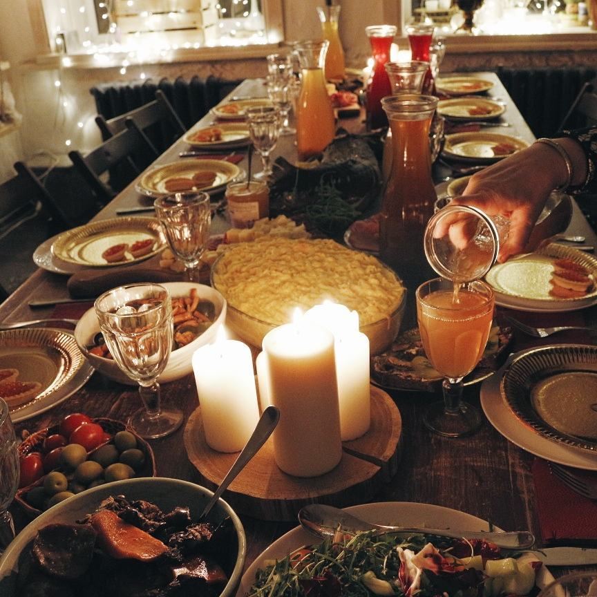 Поставим красивую посуду, украсим стол. Вы можете принести свои угощения.